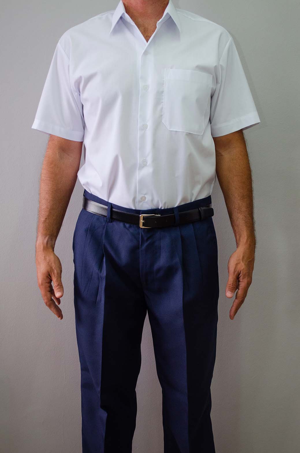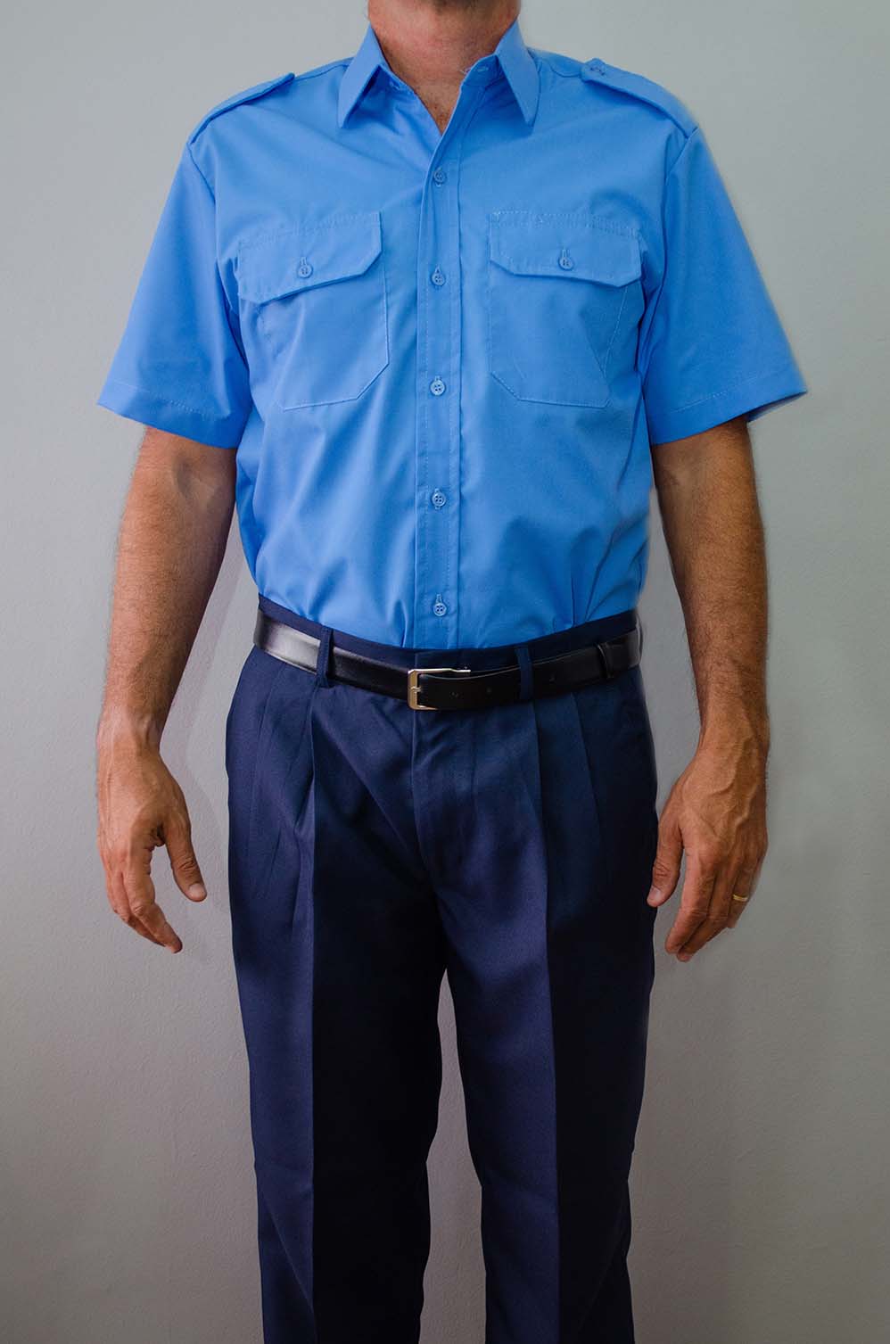 Camisa Profissional Masculina com Lapela no ombro Manga Curta azul celeste