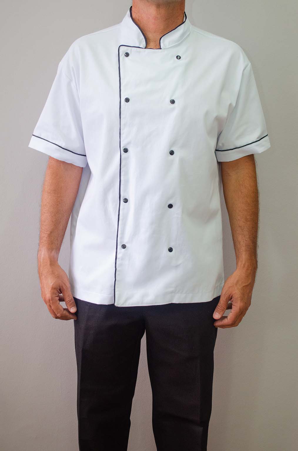 Jaqueta de Cozinheiro (Dolma) com botão de pressão e viés preto