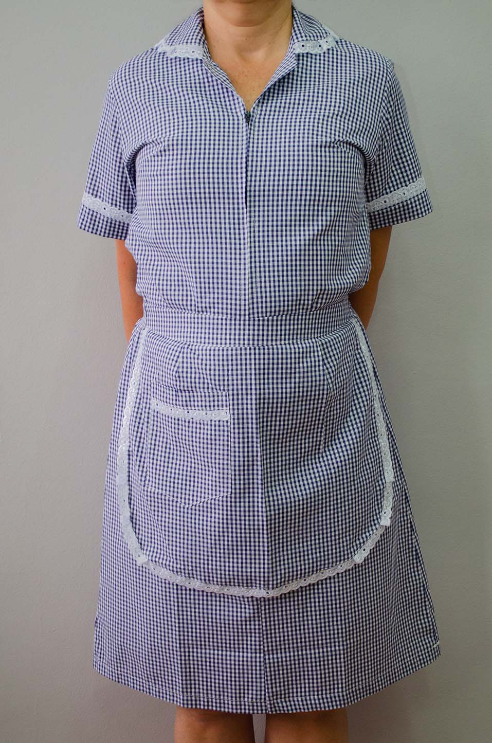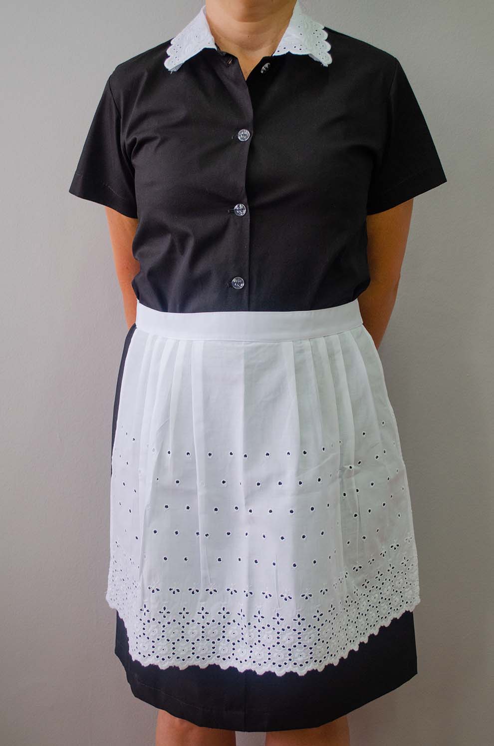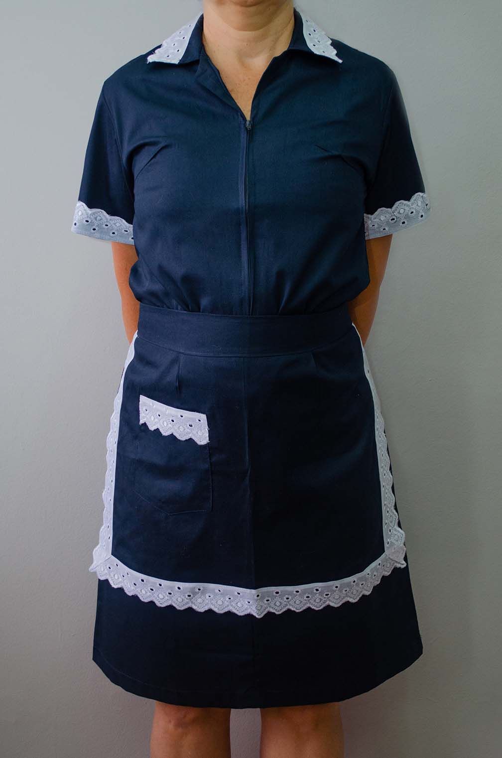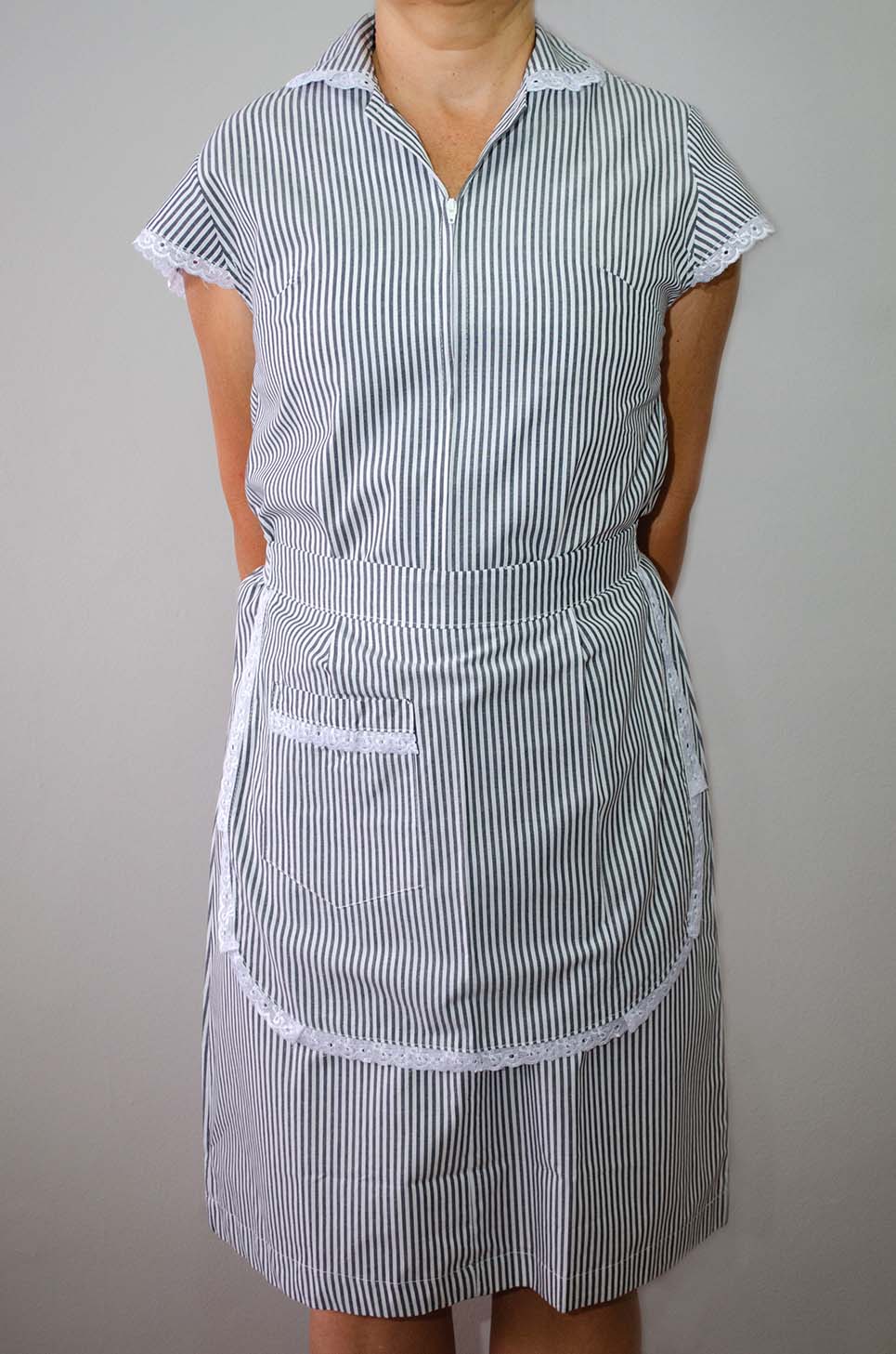 Conjunto de vestido com gola. Avental bordado 5 cm com manga